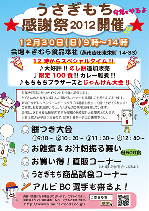 ホーム > ニュース > ♪第7回『うさぎもち感謝祭』のお知らせ♪ > うさぎもち感謝祭2012 うさぎもち感謝祭2012 2015年10月15日 うさぎもち感謝祭2012 ♪第7回『うさぎもち感謝祭』のお知らせ♪(ひとつ前の記事) ニュース一覧に戻る